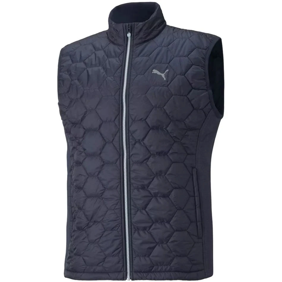 The Puma Cloudspun WRMLBL Golf Vest is a classic Puma design that offers both lightweight comfort and lasting warmth thanks to PrimaLoft Gold Insulation panels across the front and back of the vest. The full-zip closure makes getting this vest on/off easy while the stylish design works both on & off the course.